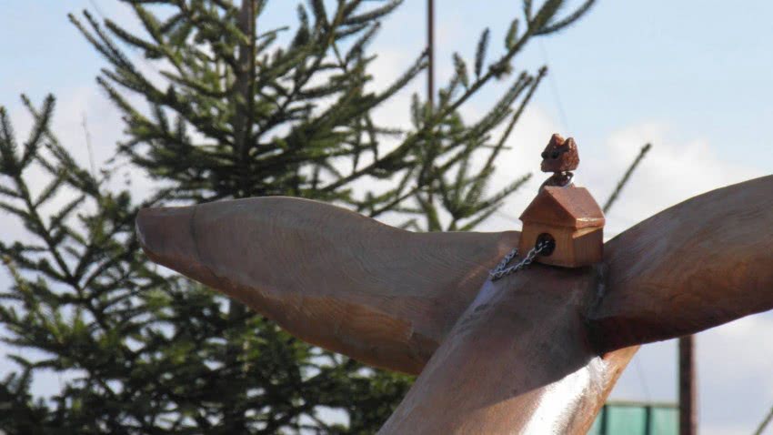 На последнем этапе приклеивают лапы и крылья. Теперь утку можно покрывать шпатлевкой, шлифовать и красить. Расцветка птицы зависит от пожелания мастера. Чтобы утка не улетела вместе с порывом первого ветра, ее закрепляют, насаживая на штырь, воткнутый в землю, или же фиксируют цементом.