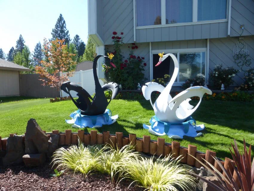 После покраски птицу закрепляют на постоянном месте. Резиновые лебеди не боятся смены температур и погодных условий. Их не убирают на зиму и не накрывают от жары или дождя.