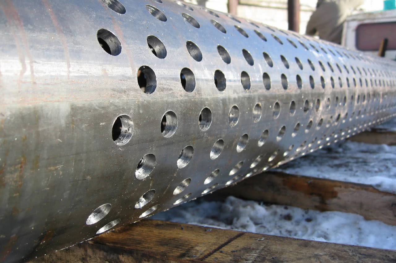 При использовании металлических труб можно применить геологический или нефтяной сортамент. Используя сверла, проделывают перфорацию отрезка трубы.