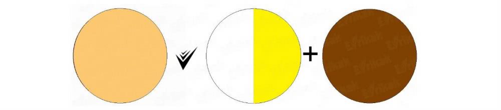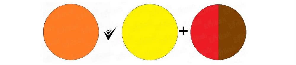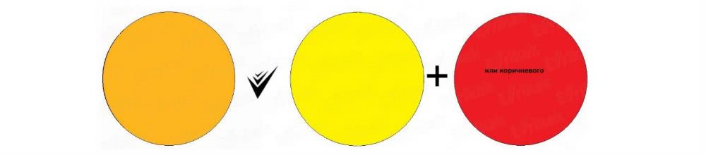 - Темно-коричневый – снова желтый, смешанный с красным, черным и белым.