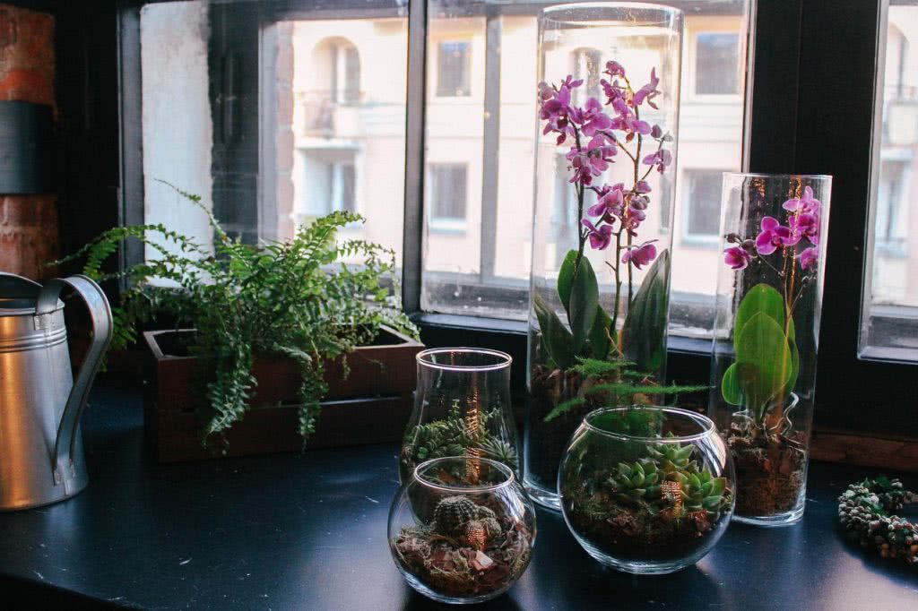 Флорариум с крышкой поможет сохранять влагу внутри, не позволяя ей быстро испаряться