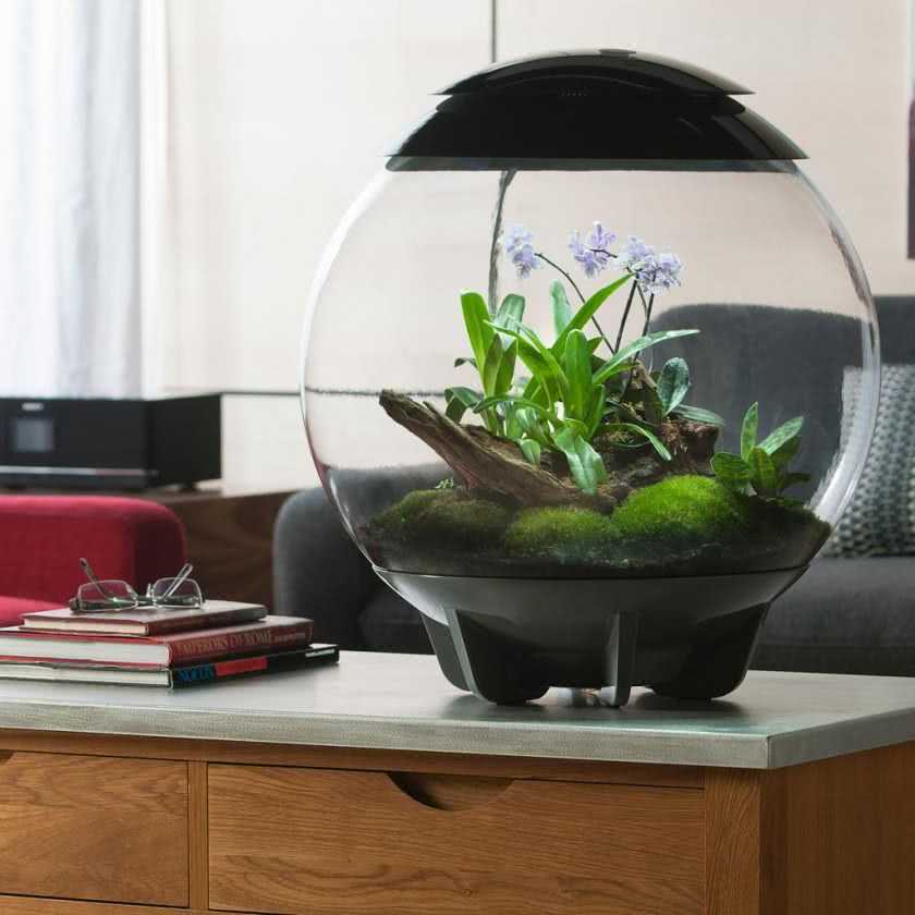 Круглые флорариумы — как правило, размещаются там, где они полностью просматриваются со всех ракурсов. Отлично смотрятся в подвешенном виде.