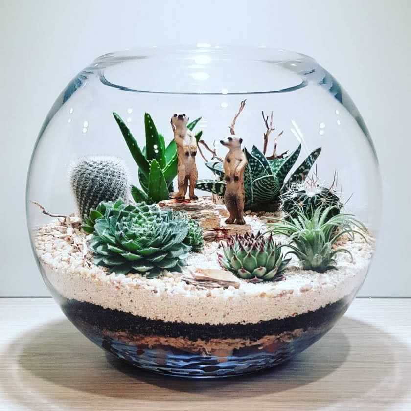 - для создания мини-пустыни используйте суккуленты, алоэ или кактусы;