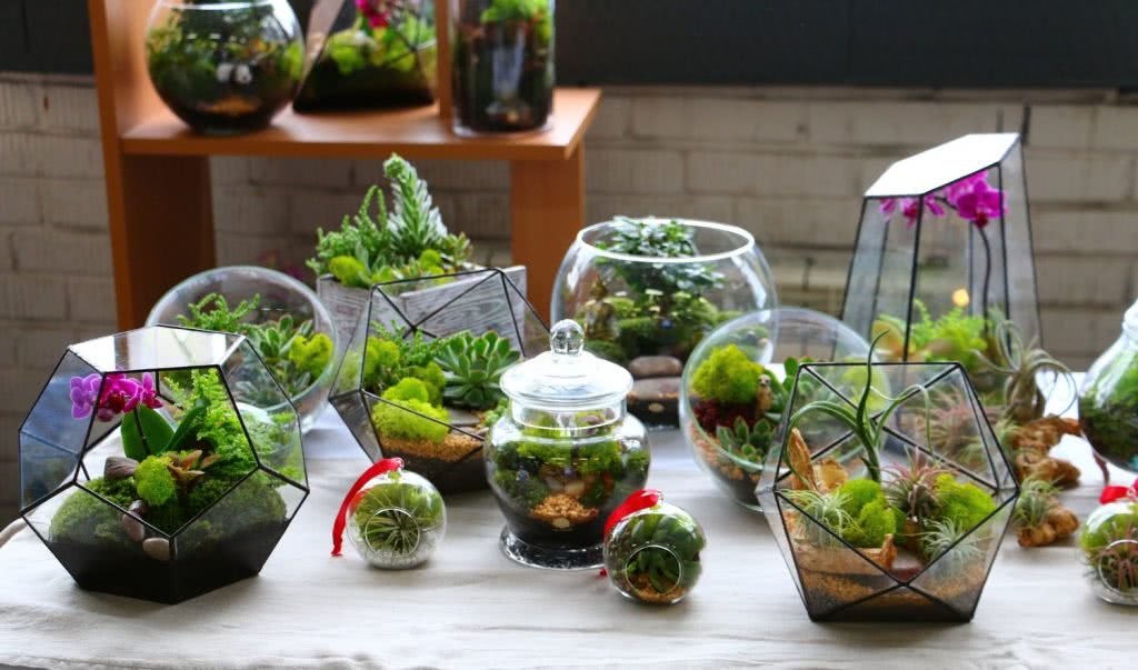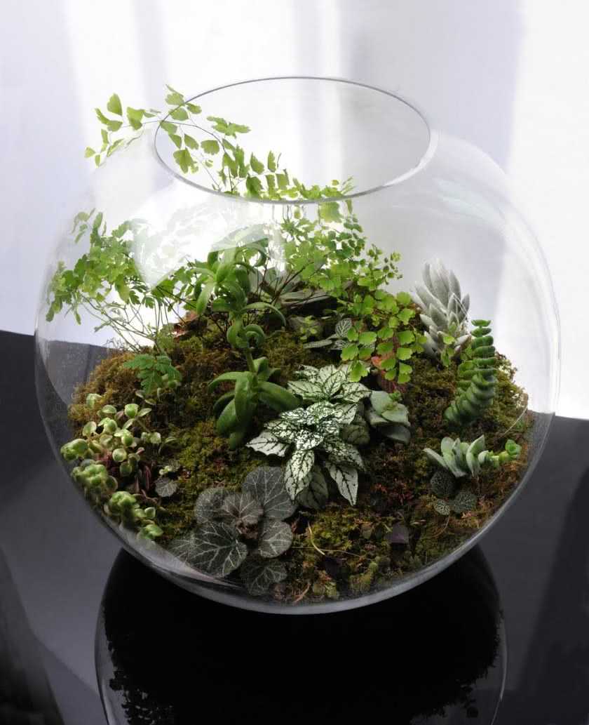Флорариумы подразделяются на несколько видов, в зависимости от типа и формы емкости, заданной тематики и посаженных растений: