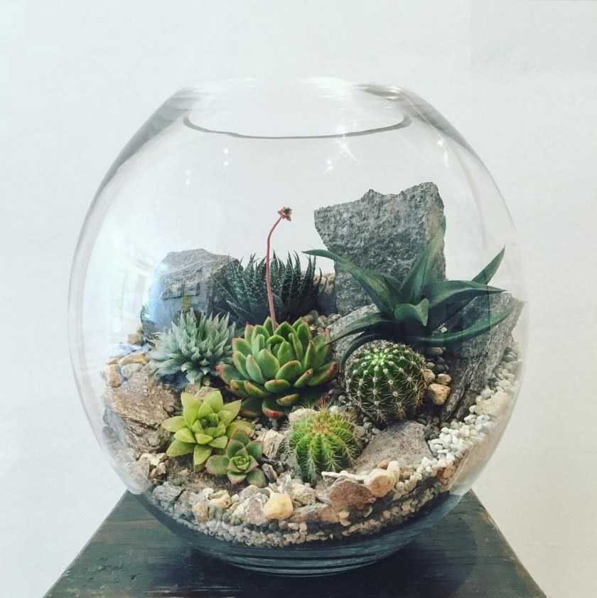 Этот флорариум будет моделировать пустыню. В нем отлично растут суккуленты, к которым относятся: