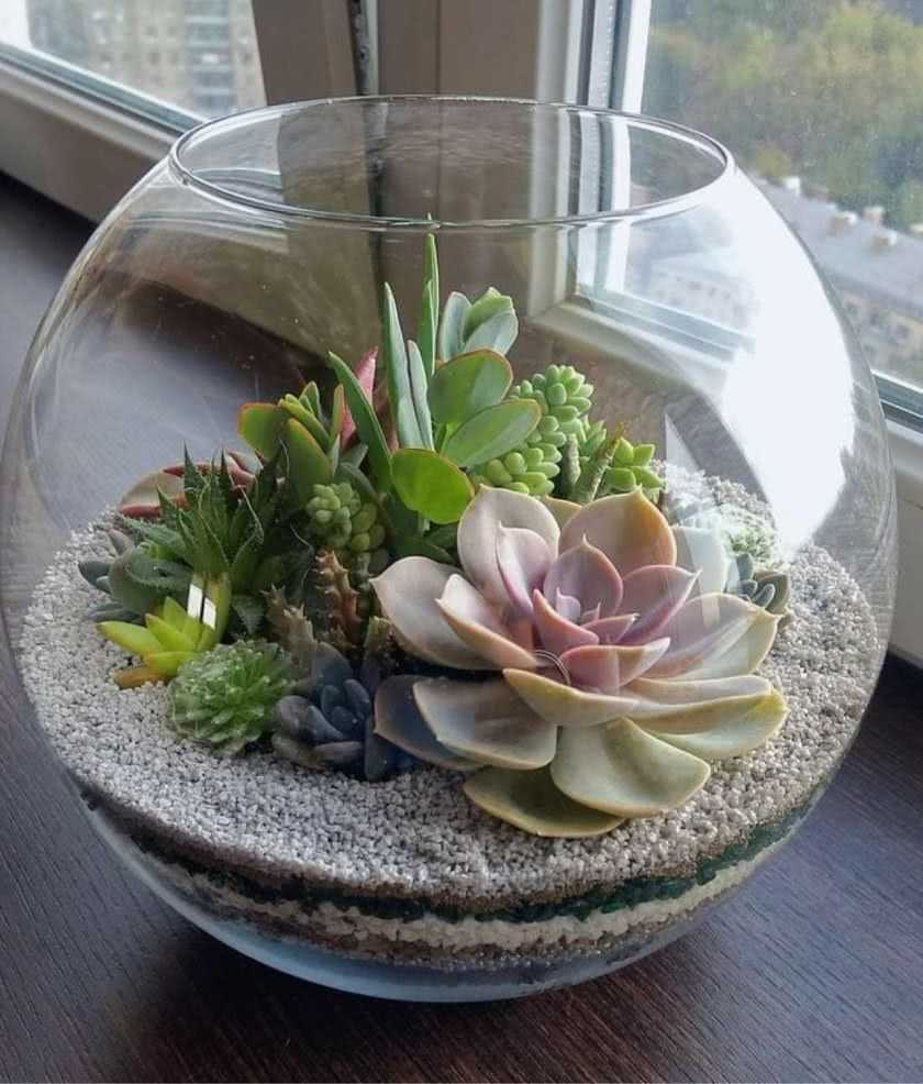 В продаже существует масса предметов, которые можно приспособить под будущий садик для суккулентов. Помимо банальных стеклянных тар, приобретающихся в цветочных магазинах, можно отыскать даже дома прозрачный футляр для растений.