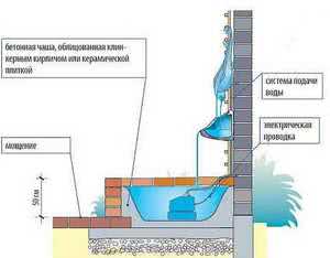 Покупать специально чашу для подготовки конструкции необязательно, если есть в наличии старая акриловая ванна. До того, как приступить к работам потребуется подобрать камни подходящего размера, ванну, землю, циркуляционный насос, металлический лист, а также декор. Украсить на завершающем этапе фонтан получится скульптурами, светильниками или растениями. Если предварительно подготовить схему фонтана устройство, где будет прописано максимально детально, то это облегчит задачу.