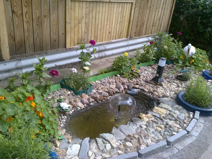 Дно выстилается песком, бока – кирпичом, а вся внутренняя поверхность – плотным полиэтиленом. Многие дачники, оборудуя домашние фонтаны своими руками, пускают в ход так называемый бросовый материал. Это остатки стройматериалов (натуральный камень, плитка), а также то, что есть в каждом хозяйстве – шины от автомобилей, изделия из стекла и керамики. Единственное требование к материалу – прочность и устойчивость к температурным перепадам.