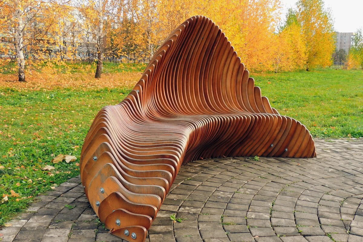 Необычные скамейки с причудливо выгнутыми спинками будут удивлять гостей, привлекая всеобщее внимание