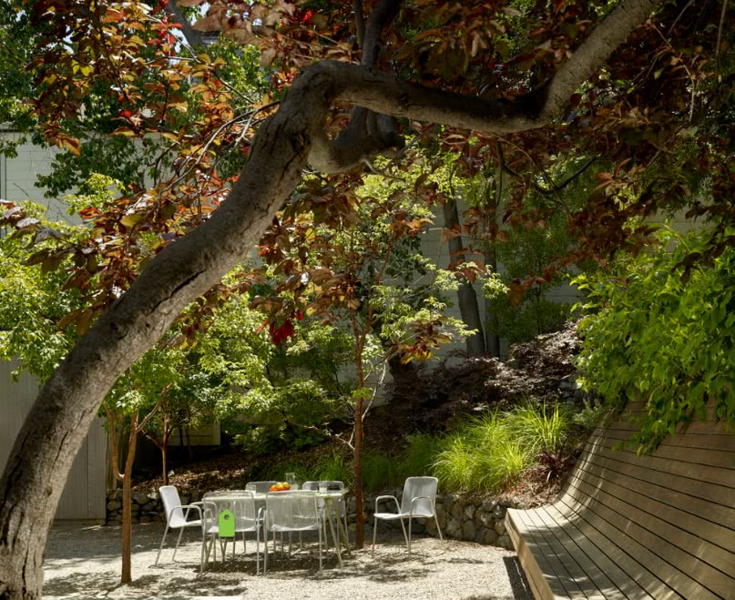 Многие владельцы дачных участков решают установить скамейку вокруг ствола дерева. Если это молодое, растущее дерево, необходимо предусмотреть достаточное свободное пространство между ним и скамейкой. В противном случае, с течением времени разрастающийся ствол просто разрушит садовую мебель.