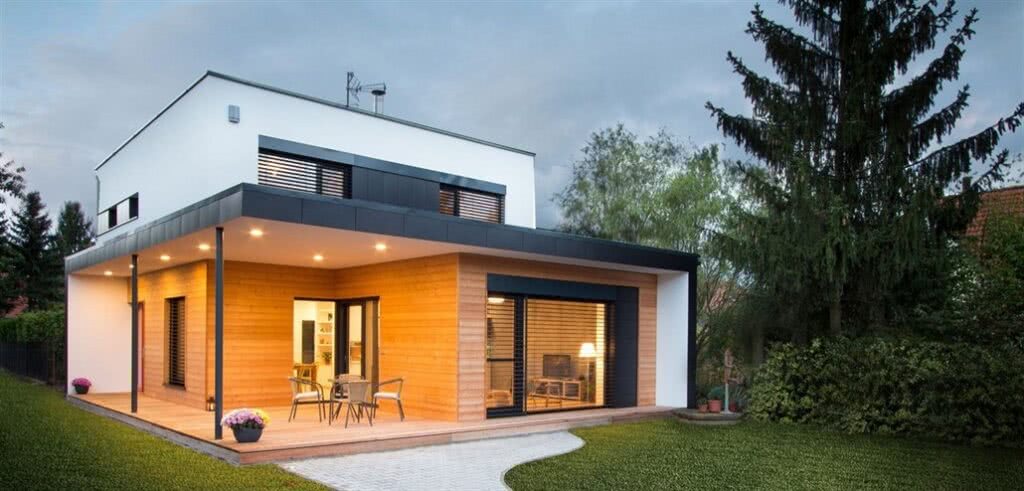Это хорошее решение, особенно для людей, у которых очень узкий, небольшой участок. Его заменит «зеленая терраса», устроенная на плоской крыше. Это может быть место с прекрасным видом на окрестности, сад, гербарий на заднем дворе, а также место может использоваться для отдыха или развлечения гостей.