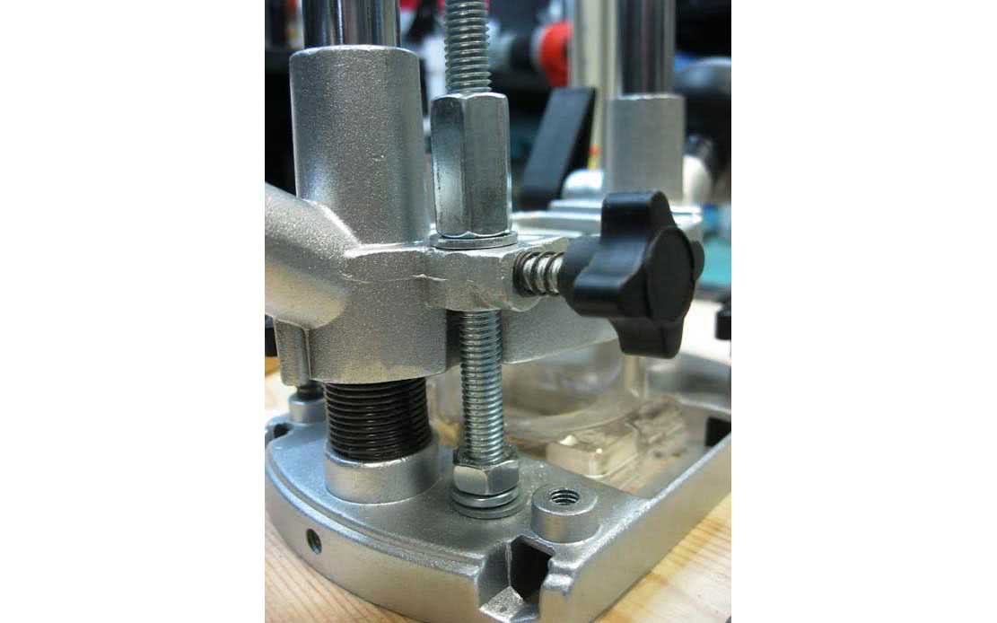 Вращая гайку на винте, производится перемещение фрезера вверх или вниз. Используется торцевой ключ. |