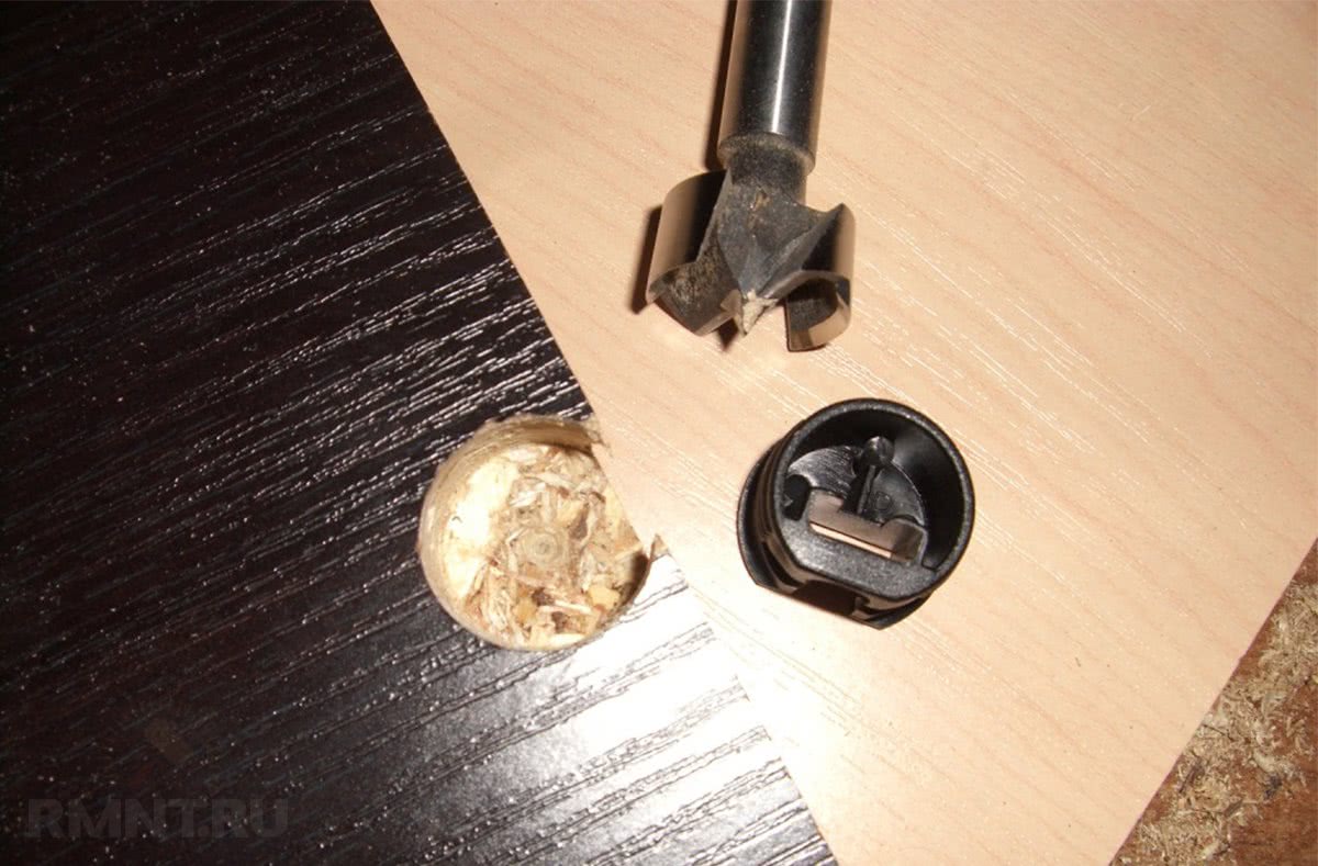 Их достаточно много, в частности к таковым относится и знаменитое сверло Форстнера, и различные специализированные фрезы для врезки мебельной фурнитуры, которые чаще применяются с дрелью, нежели с ручным фрезером. К ним же относится и специальная коронная фреза для получения круглых шипов различного диаметра.