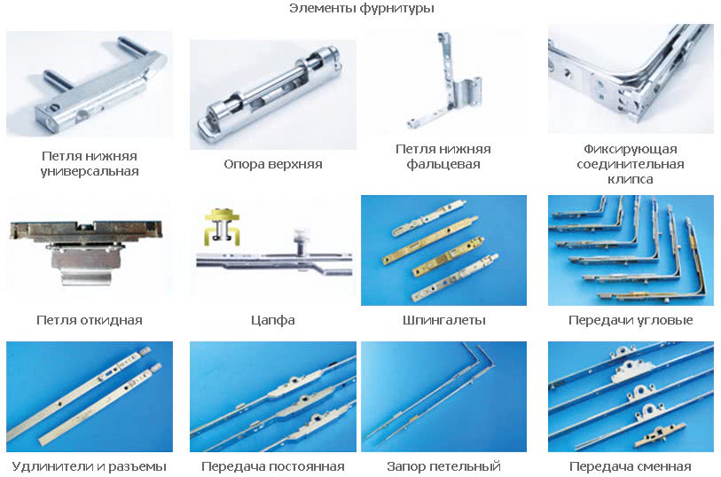 Рис. 2. Разновидности деталей оконной фурнитуры.