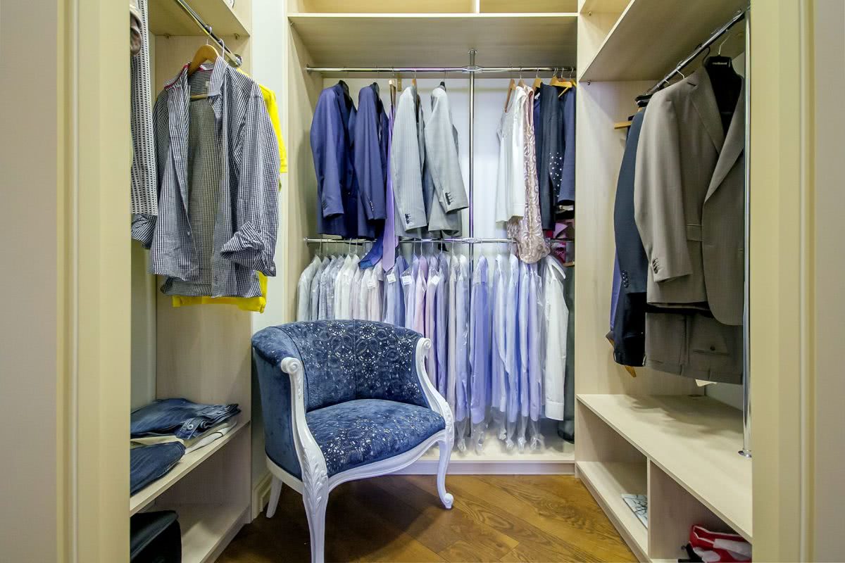 Идеальный вариант – это проекты домов с гардеробными комнатами, но и в обычной квартире с типовой планировкой можно устроиться не хуже.
