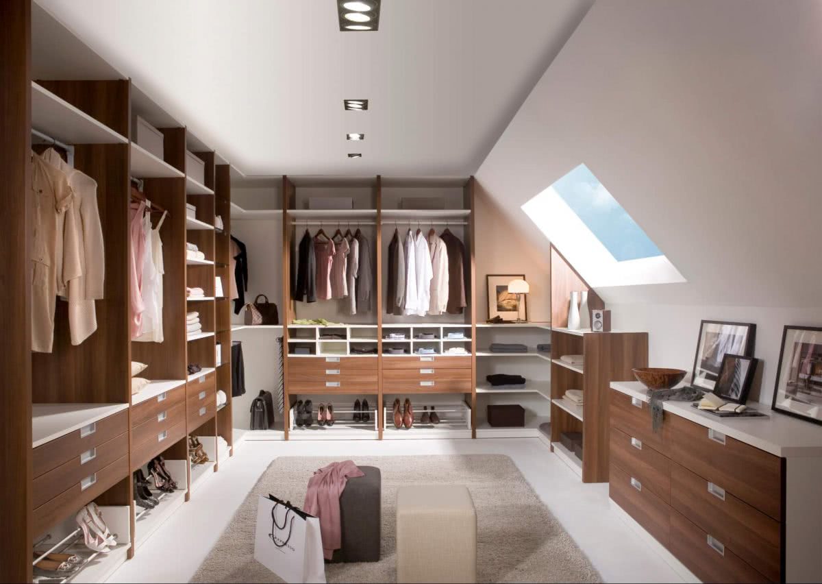 Самым удачным и практичным размещением мини-гардеробной является спальня или же мансарда 2х2