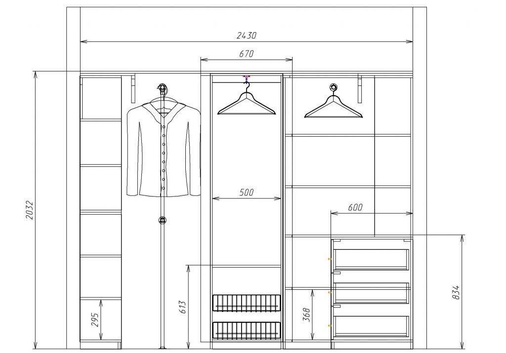 Требуется осуществить следующие шаги при обустройстве гардероба: