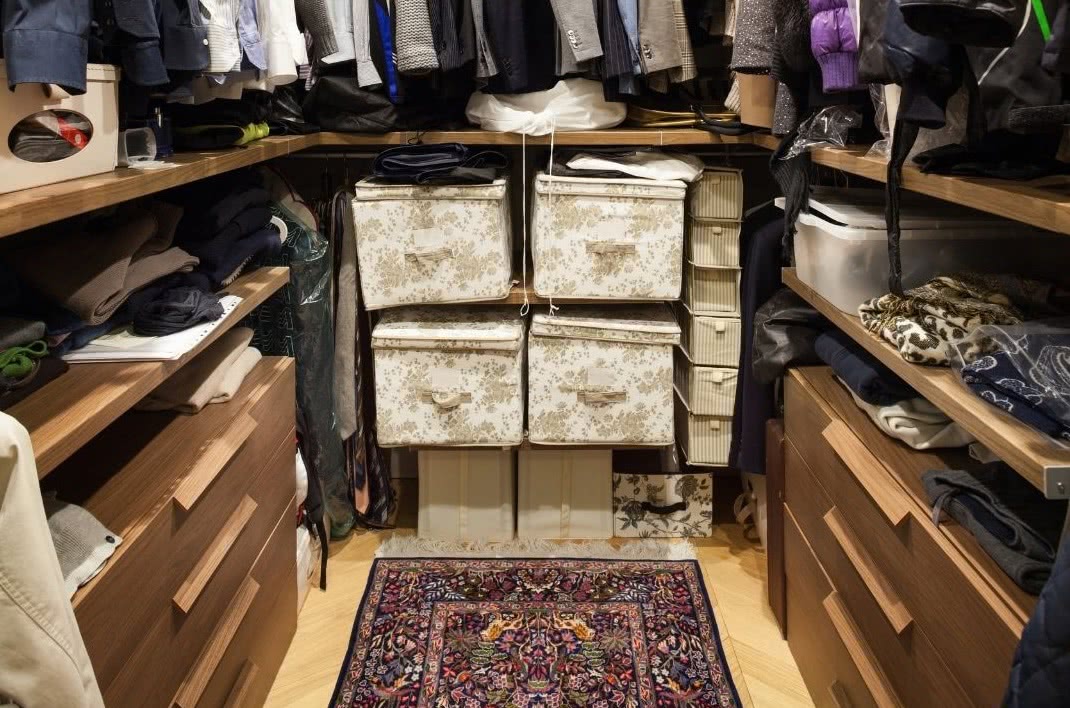 В зависимости от количества проживающих, хранилище можно разделить на несколько зон. Пространство членят на женскую, мужскую и детские части. Планировка помогает рационально использовать полезную площадь и облегчает поиск, сортировку вещей.