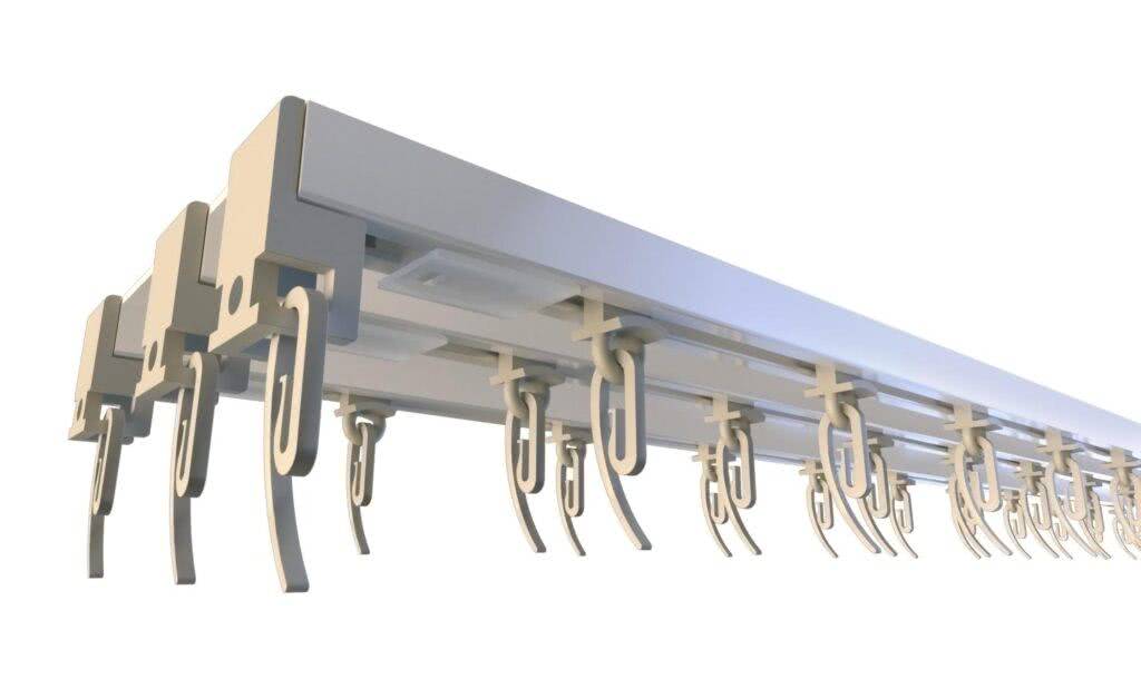 Присутствие сразу 3 рядов с пластиковыми крючками позволяет использовать не только легкую занавеску из тюля, но и тяжеловесные портьеры, ламбрекены из плотных тканей. Либо можно прикрепить портьеры внахлест на две соседние дорожки.
