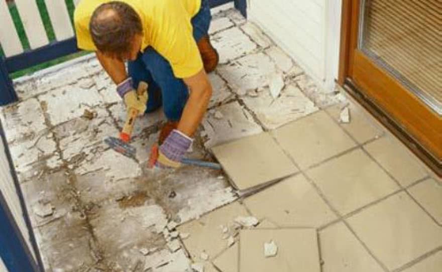- При наличии напольной декоративной отделки осуществляют ее демонтаж. Все работы нужно проводить аккуратно во избежание повреждения бетонной плиты.