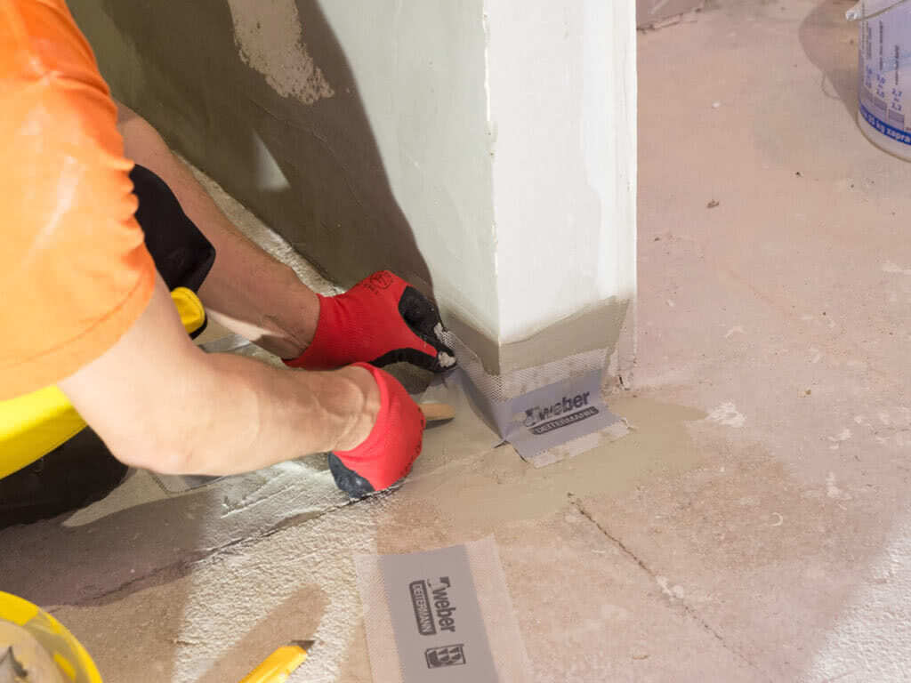 Гидроизоляционная лента также необходима в углах и местах примыкания стен к полу. Весь срок эксплуатации здание дает усадку, и в зонах повышенных нагрузок возможна деформация покрытия. А лента благодаря эластичности к таким испытаниям готова.