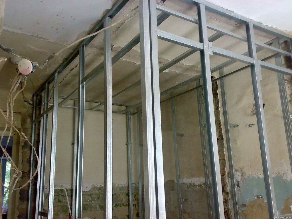Существенных отличий между монтажом каркаса из металлических профилей и из деревянных брусков нет. Принцип сооружения аналогичный: