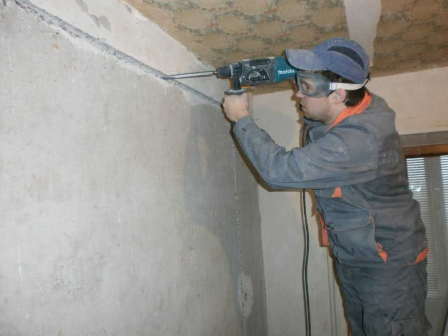 Штробление посредством перфоратора