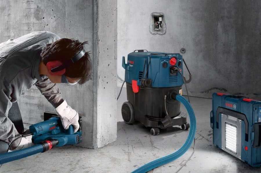 - Специальный пылесос. В этой версии не нужно помощник. Приобретается специальное устройство, подключаемое к инструменту. Оно позволяет штробить болгаркой без мусора и пыли.