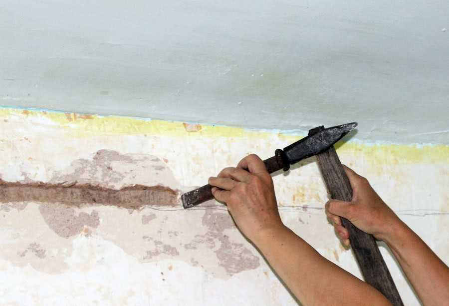 Штробление молотком и зубилом