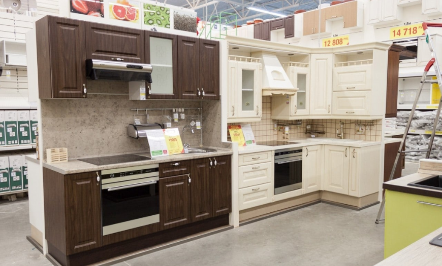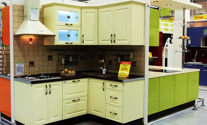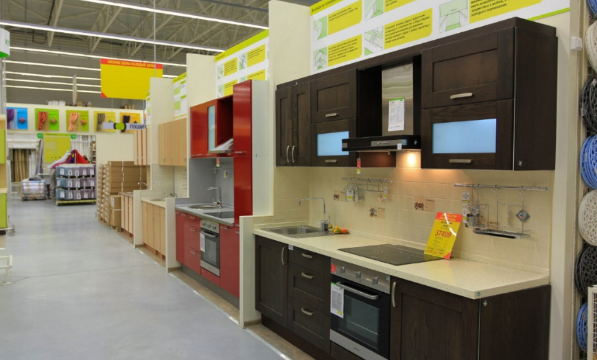 В гипермаркете предлагают приобрести как проектные варианты кухонь, так и модульные. Чтобы создать модульную кухню, не нужно нанимать дизайнера. В гипермаркете в каталоге на официальном сайте предложена готовая мебель, которая отличается цветовой гаммой, параметрами, материалом изготовления. Покупатель подбирает конструкцию, которая будет соответствовать его вкусам и финансовым возможностям.