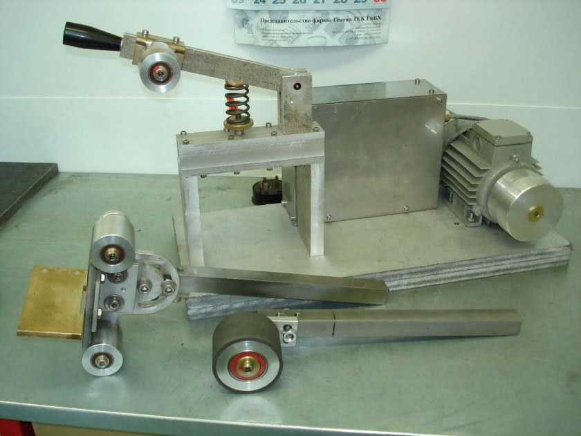 Основное внимание при разработке стоит уделить конструкции роликов, фиксации изделия при шлифовании и выбору мощности электродвигателя. Рассмотрим эти моменты подробнее