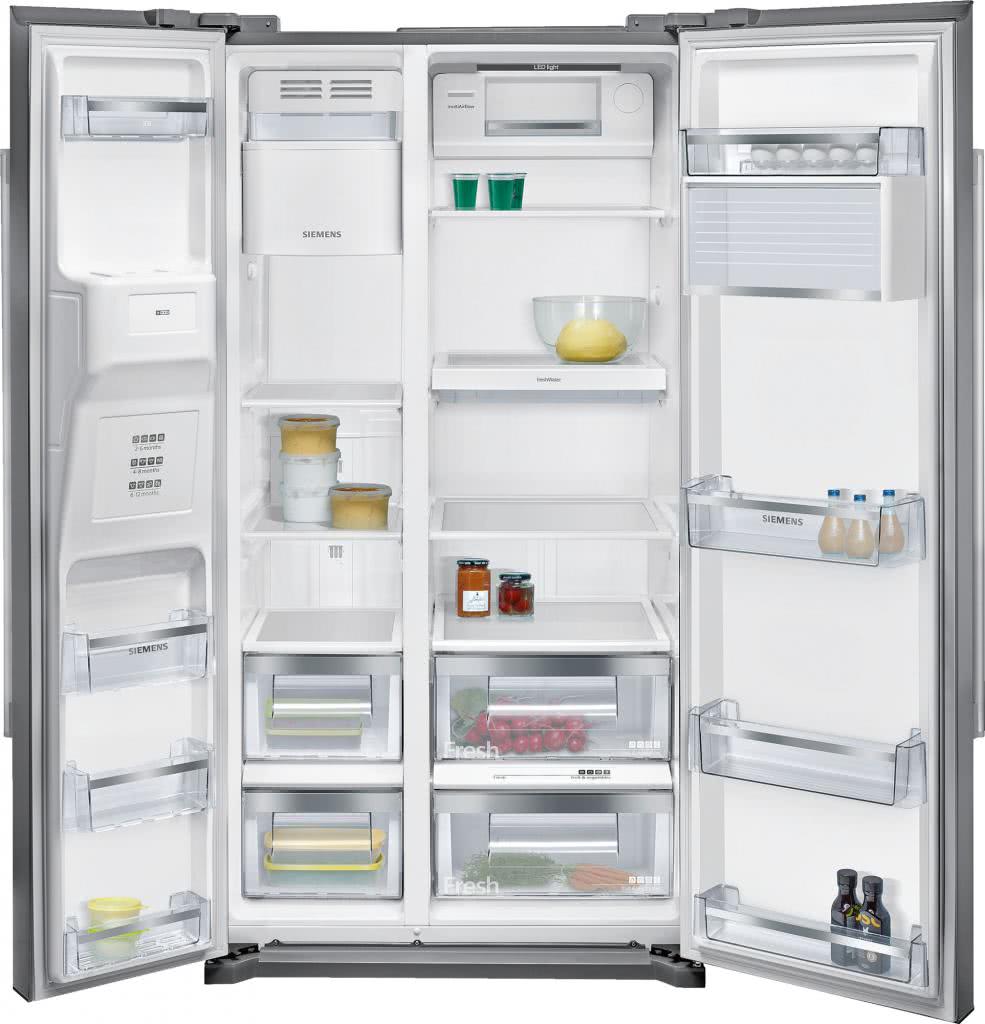 Популярный холодильник Siemens KA 90 IVI 20 R с полезным объемом 523 литра, укомплектованный одним стандартным компрессором, автоматическим ледогенератором и системой No Frost для обеих камер стоит около 150 000 рублей. Модель Side by Side Bosch KAG 90 AI 20 R с аналогичным объемом, зоной свежести (с возможностью выбора температуры), двумя боксами для овощей и фруктов (с регулировкой влажности) обойдется уже в 174 000 рублей. Оба двухдверных холодильника с морозильной камерой, расположенной слева, имеют класс энергопотребления А+ и годовую гарантию производителя.