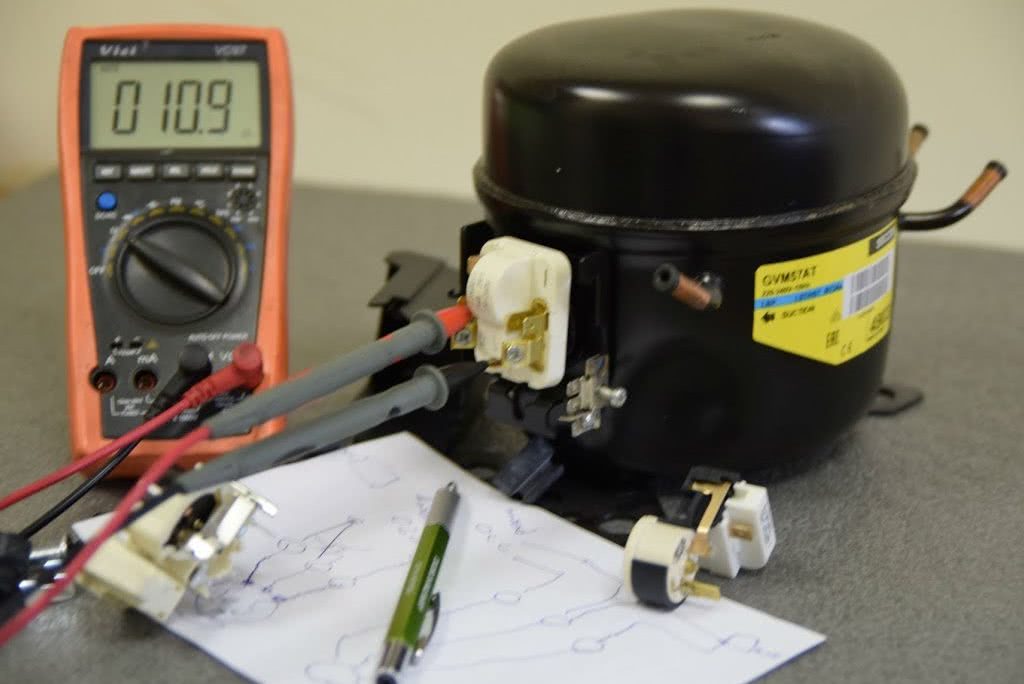 Если компрессор долго запускается, но издает только щелчки, значит, неисправность в реле запуска. Проверяют напряжение на конденсаторе, возможно, придется заменить двигатель.