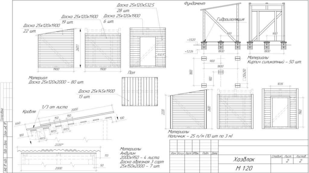 Важно указать размеры хозблока и каждого элемента: так проще рассчитать нужное количество материалов и составить смету