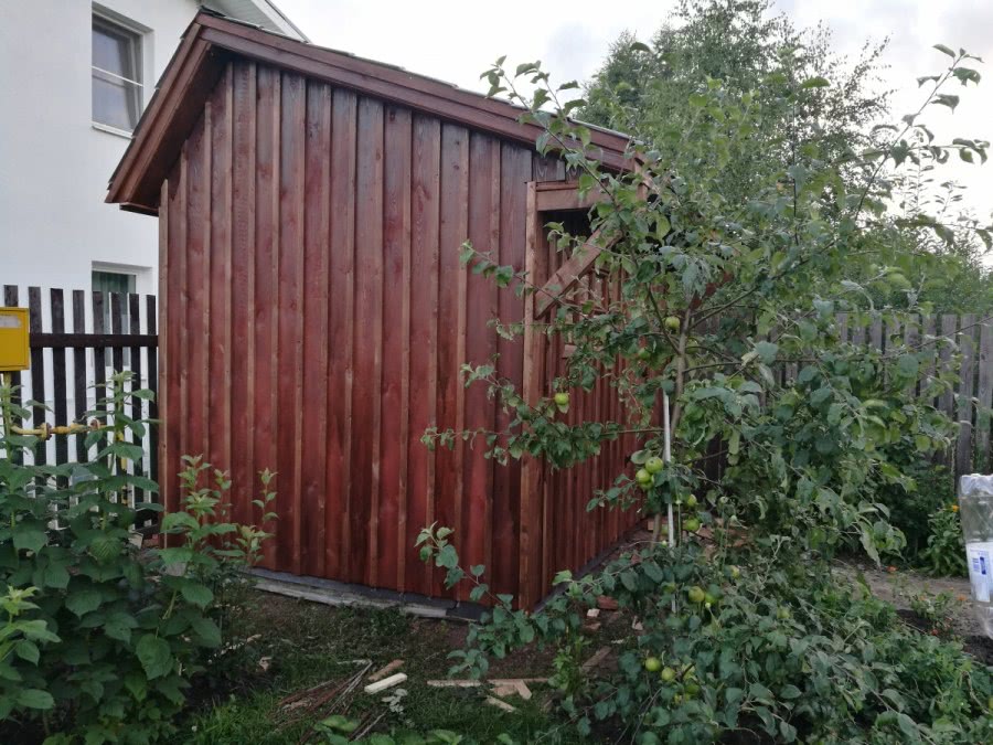 Современные дачные хозпостройки вполне могут быть сделаны на основе деревянного щита. Для их обшивки используют чаще всего стружечные либо волокнистые плиты. Несколько реже применяются фанера и вагонка. Преимуществом подобного решения является сравнительно маленький вес.