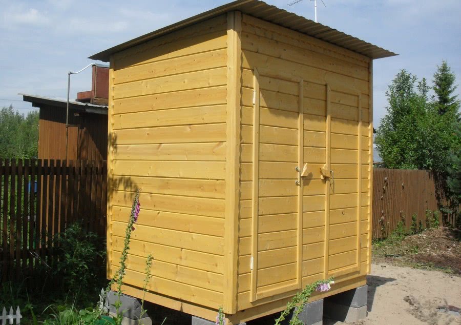 Делать дачный душ с туалетом под одной крышей не лишён преимуществ. К достоинствам такой постройки относится: