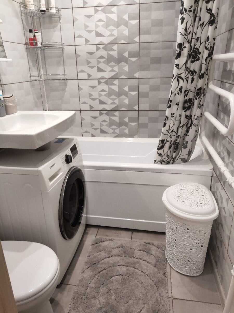 Убрав перегородку между кухней и большой комнатой, можно получить просторную зону для приготовления и принятия пищи, а также для проведения досуга с семьей или друзьями. При перепланировке также увеличивается размер санузла.