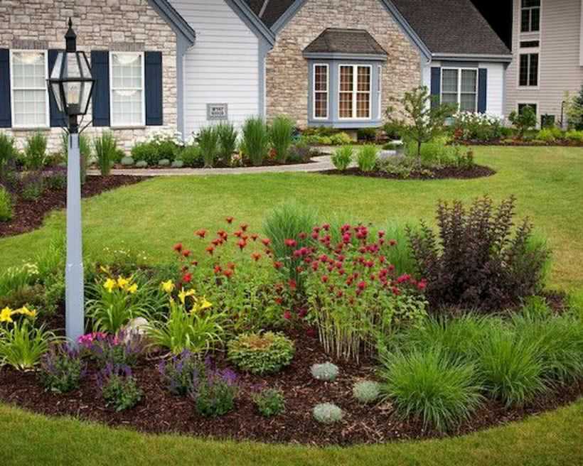 Для достаточно большой площадки перед домом (такие часто просто засевают газоном, в лучшем случае украшенном тюльпанами) подойдет вариант живой комнаты.