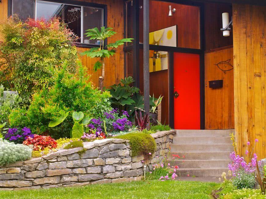 Палисадник перед домом позволяет воплотить любые дизайнерские решения. Обычно он размещается возле проезжей части, и отделяется от нее забором. На этой территории размещаются всевозможные клумбы, дорожки ведущие к дому, цветочные арки, композиции из камней, деревьев.