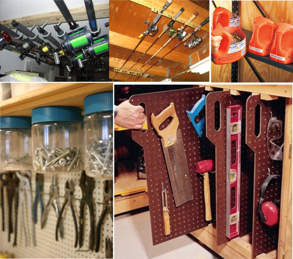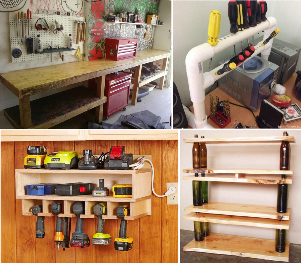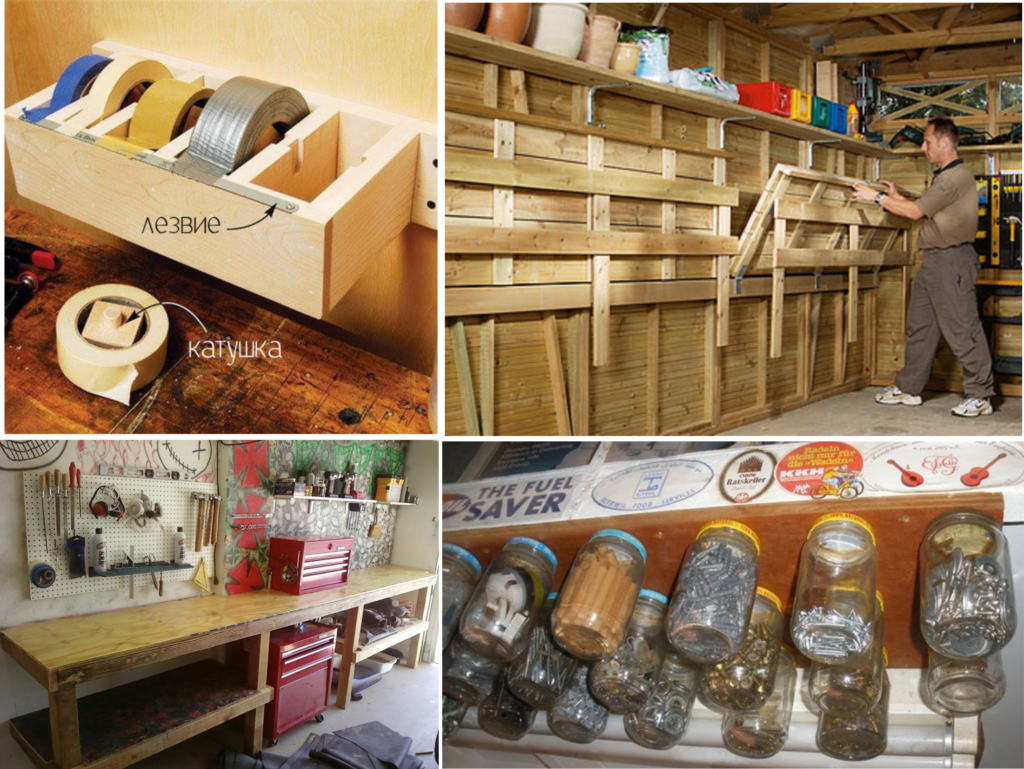Стандартные полки для инструментов и других необходимых вещей можно заменить несколькими способами: