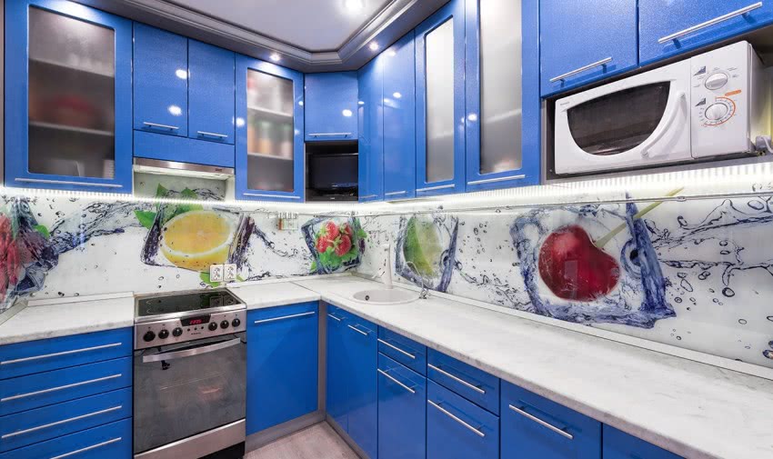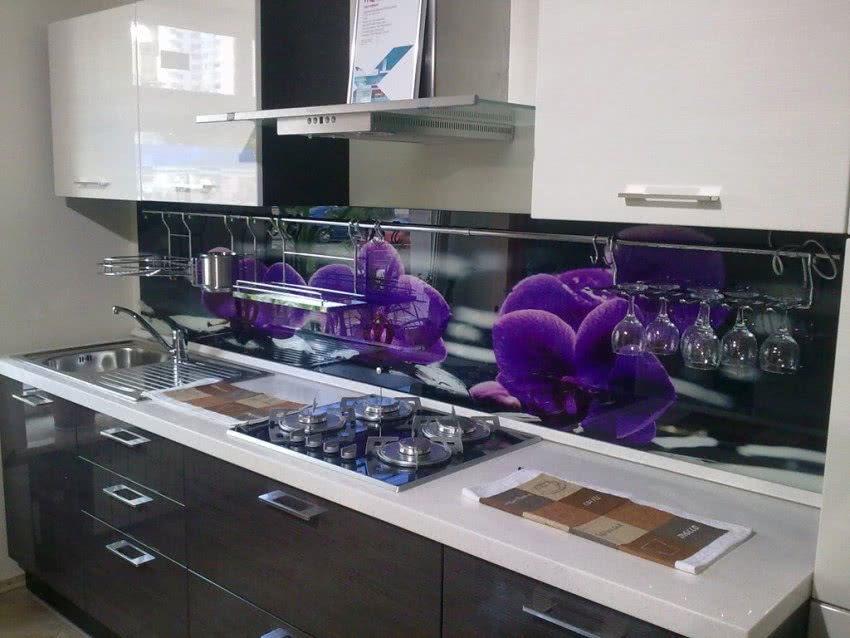 Красиво и оригинально будет смотреться кухонный фартук с фотопечатью.