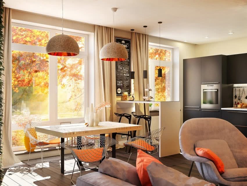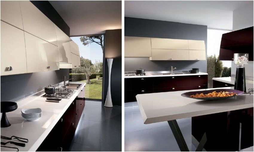 При видоизменении мебели кардинально меняется интерьер. Применяя фотографии для обновления фасадов, а также оригами и красивые салфетки, можно привнести изюминку. Для закрепления результата, чтобы работа была качественно выполнена, шкафы нужно покрыть лаком в два слоя. Мебель можно покрасить, только предварительно ее необходимо ошкурить. Еще, как вариант, гарнитур декорируется самоклеящейся пленкой, но только помните, что этот способ украшения недолговечен, и уже через полгода его необходимо менять. Маленькую кухню можно попробовать изменить и выбрать для этого деревенский стиль. Дверки снимаются, а вместо них вешаются маленькие занавески.