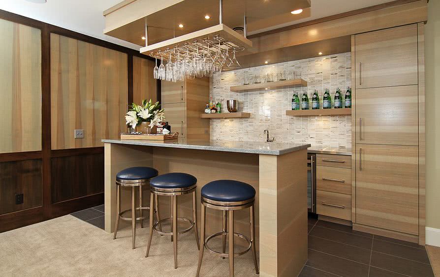 Бутылочницу просто изготовить из деревянных реек, соединенных по диагонали между собой. Современным направлениям дизайна присуще изобилие стеклянных и металлических элементов. Целесообразно оформить деревянную подставку для бутылок фольгой, стеклянной мозаикой, накладками, вырезанными из жестяных банок.