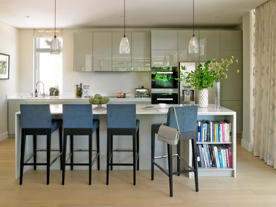 Стильным, эффектным и современным решением для небольшой комнаты является барная стойка, которая прекрасно заменит обеденный стол и сэкономит место в зале.