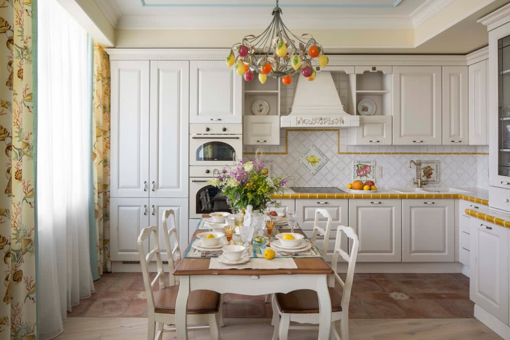 Люди, предпочитающие уют, больше тяготеют к провансу. Лучше всего использовать старинную и антикварную мебель, керамическую плитку, льняные занавески, штукатурку и кирпичную кладку. Идеально, если посуда на такой кухне будет глиняной.