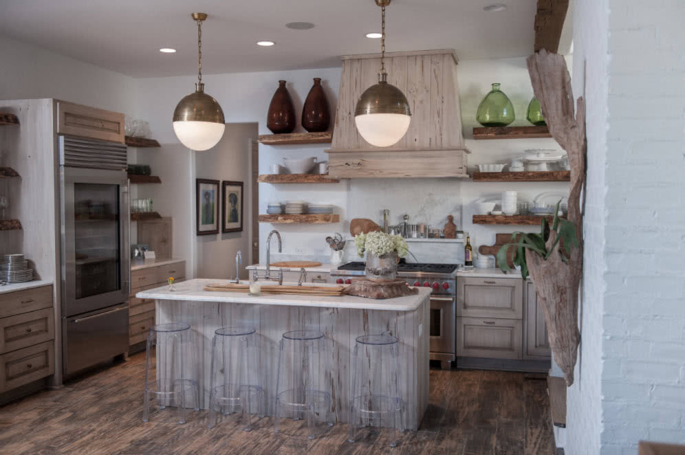 Когда площадь кухни достаточно большая, можно применить островную планировку, при которой в центре помещения делается остров. Его оборудуют под мойку, рабочую зону или обеденный стол.