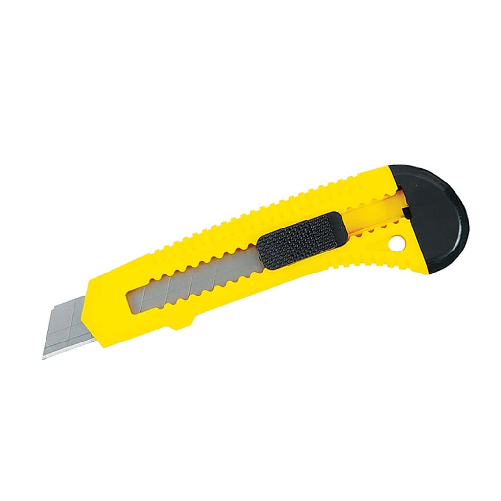 Канцелярский нож. Его обламывающееся лезвие достаточно острое, чтобы легко разрезать обои любого качества, а сам он лёгкий и удобный.