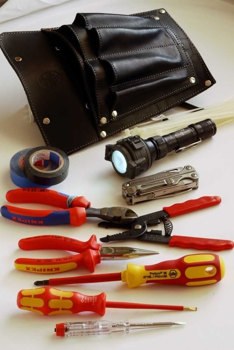 Электротехнического инструмента и проборов у электрика не так уж и много, но они должны быть всегда под рукой. Зачастую для этого электрики используют специальные пояса с карманами под инструмент.