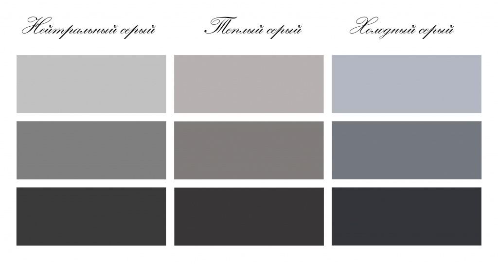 Серый обладает огромным диапазоном насыщенности и имеет множество оттенков – графитовый, платиновый, маренго и др.