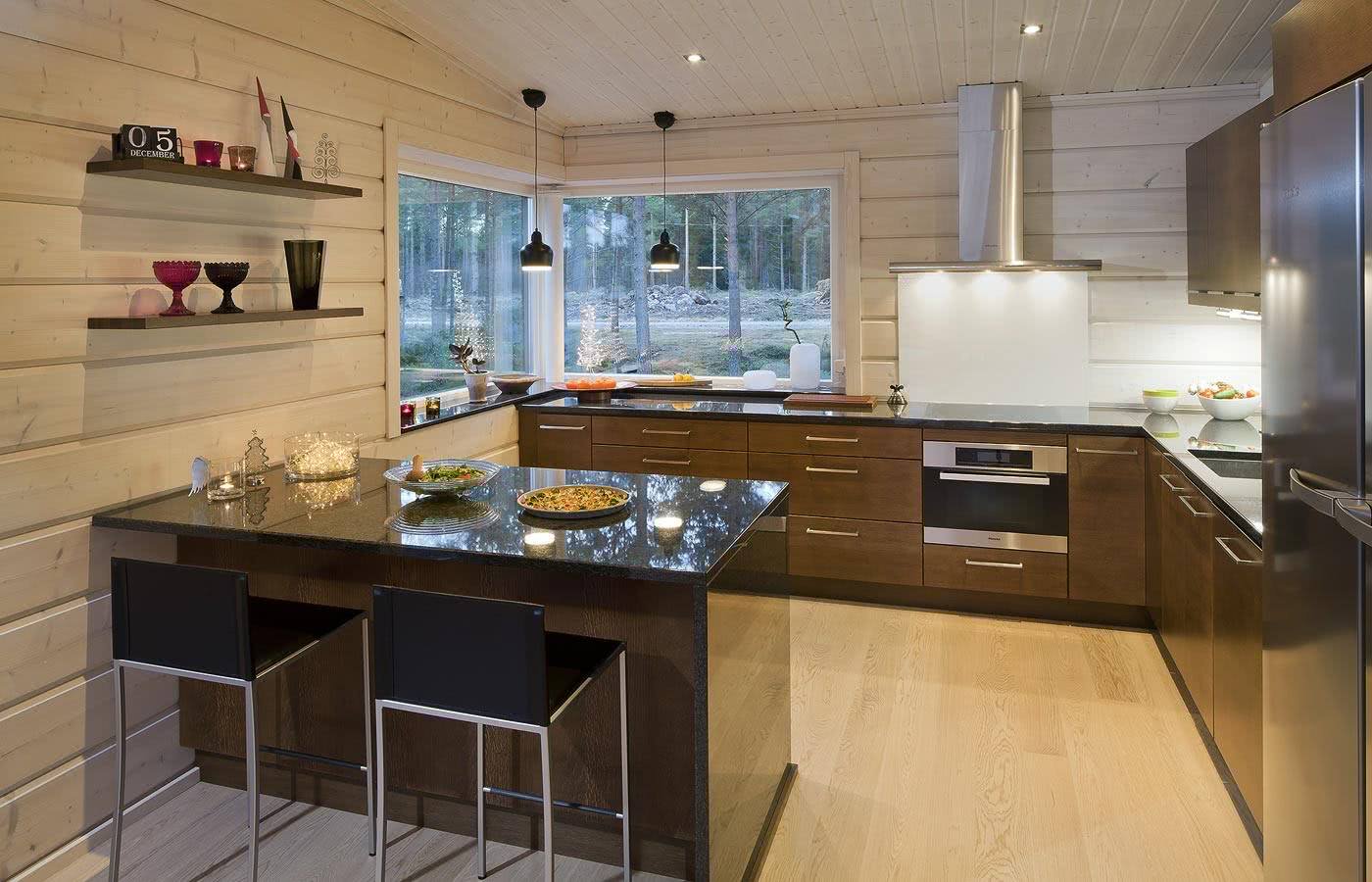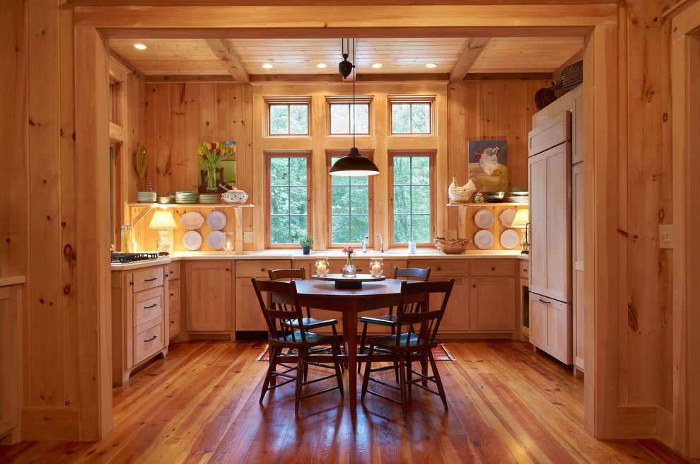 Нюансы, о которых нужно помнить при отделке кухни в доме из дерева: